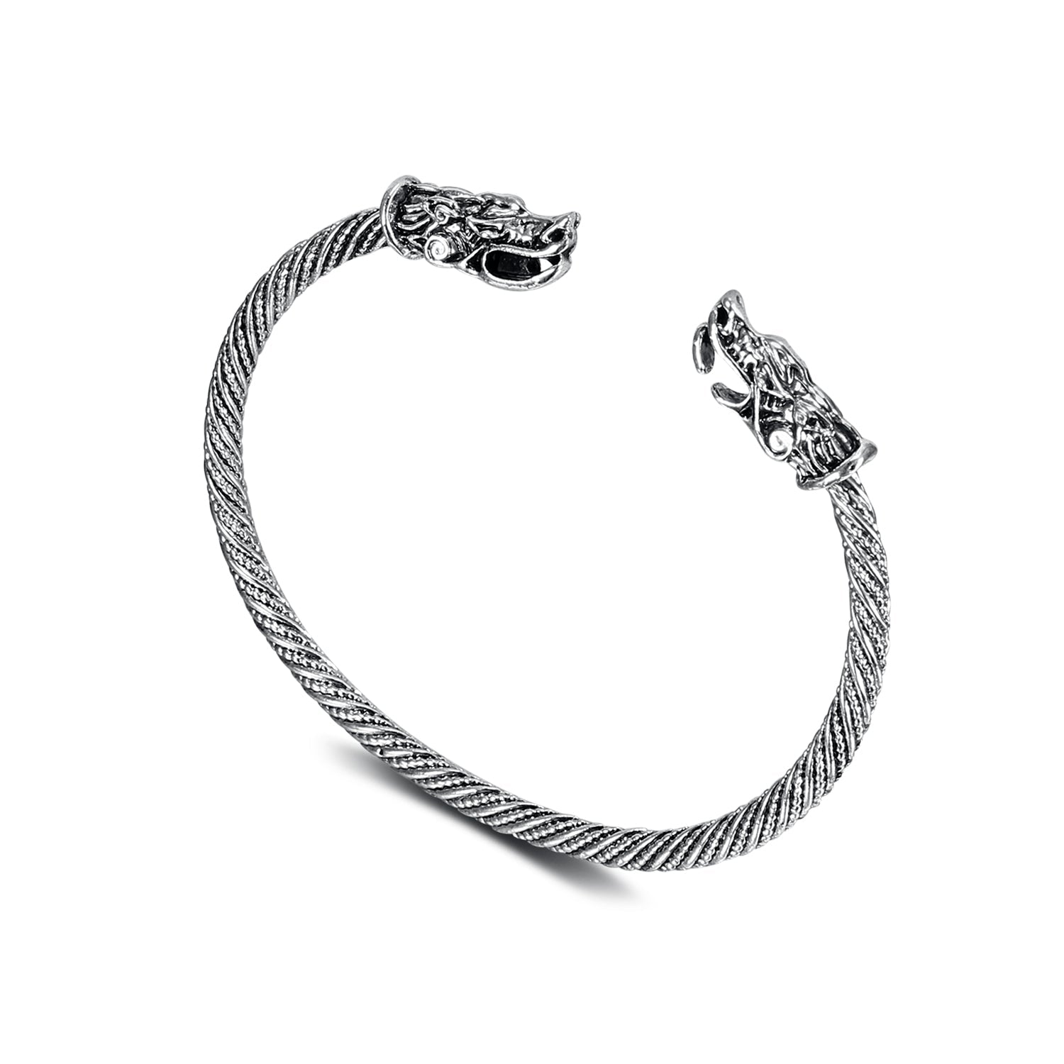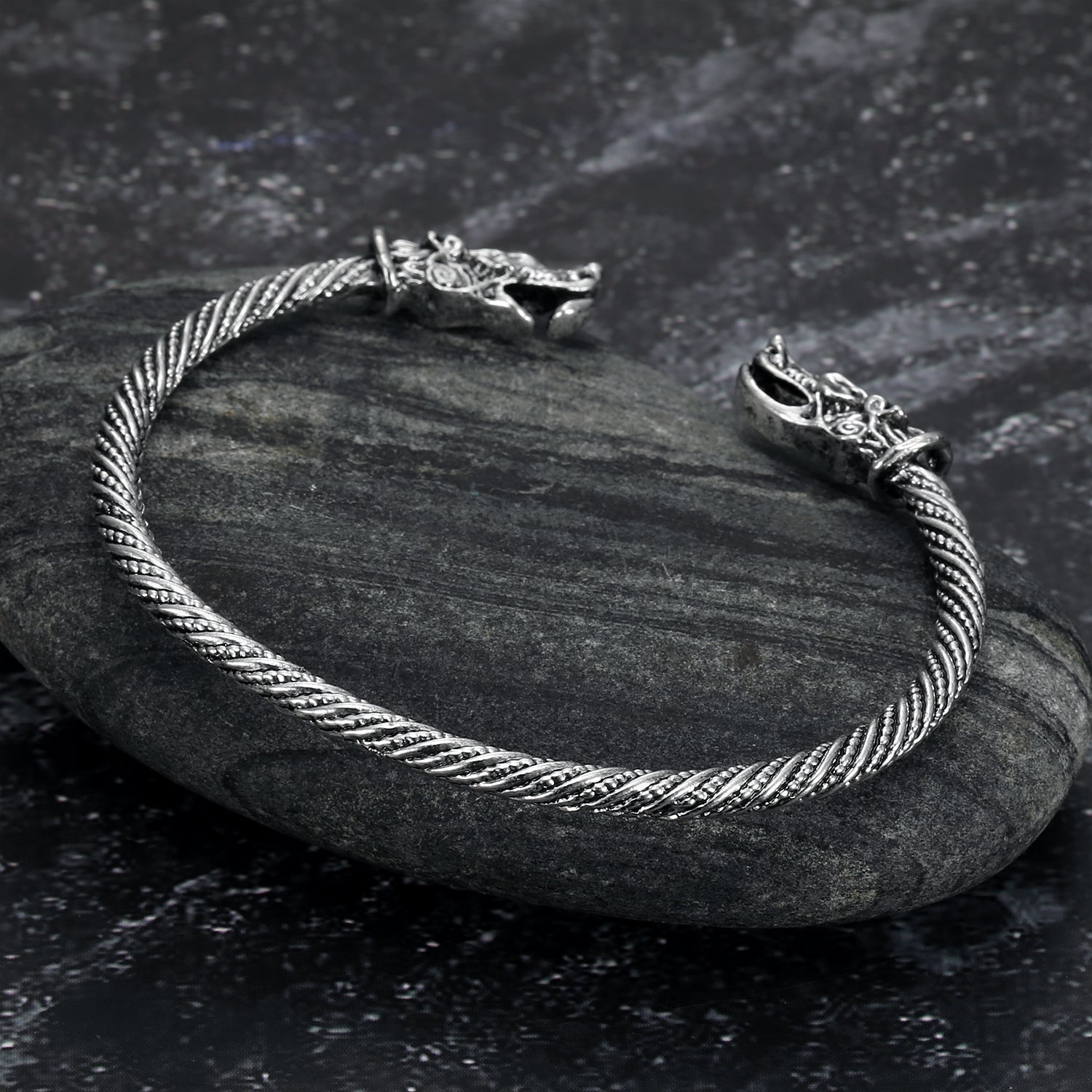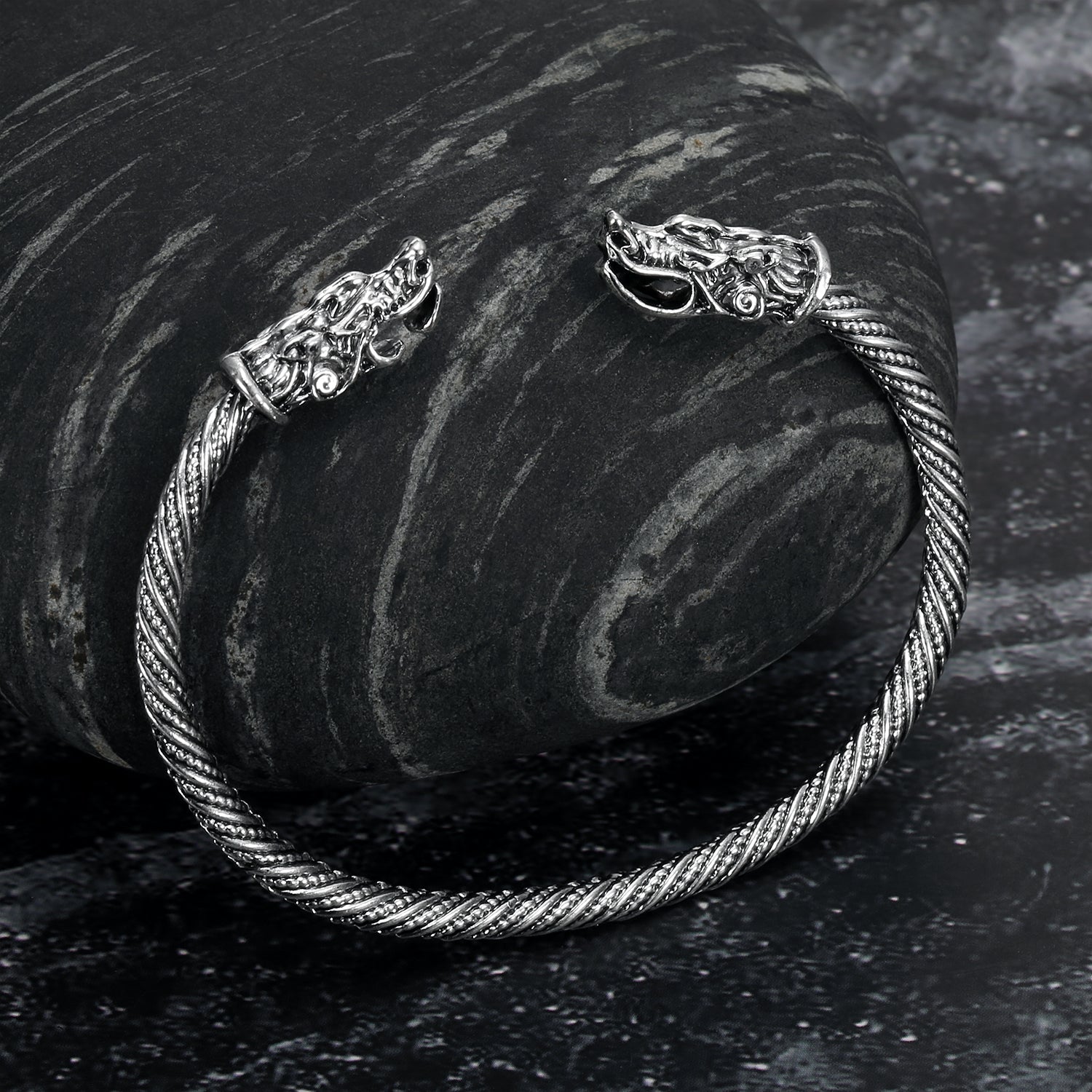 Nordic Pride Grey Wolf 's Head Torc Bracelet