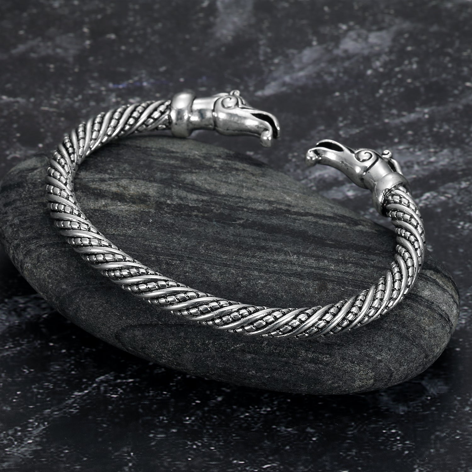 Nordic Pride Handcrafted Stainless Steel Basilisk Head Torc Bracelet