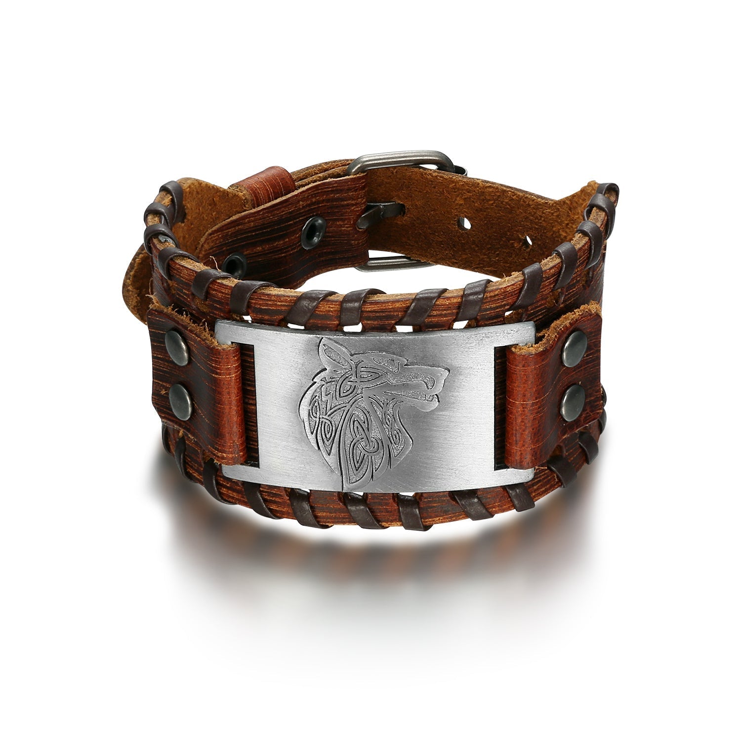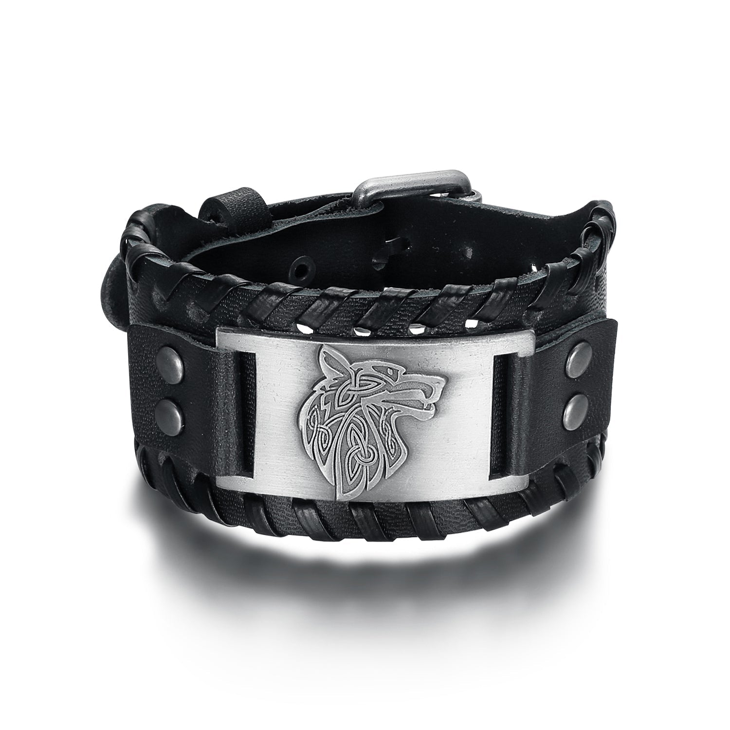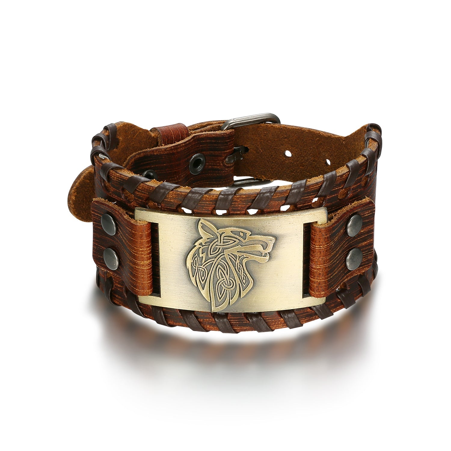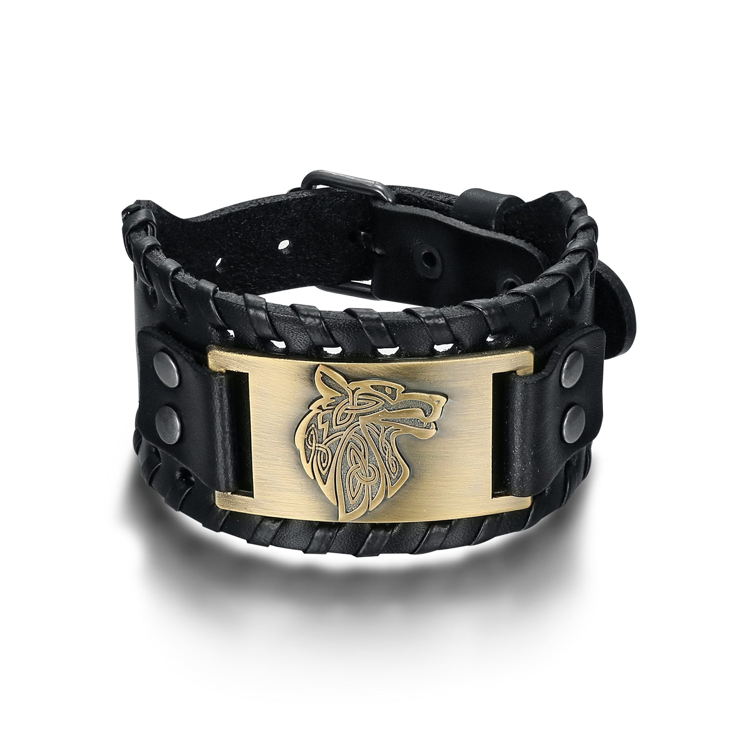 Nordic Pride Leather Buckle Arm Cuff With Fenrir Design
