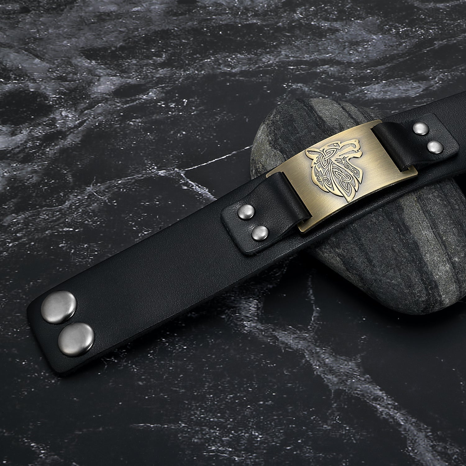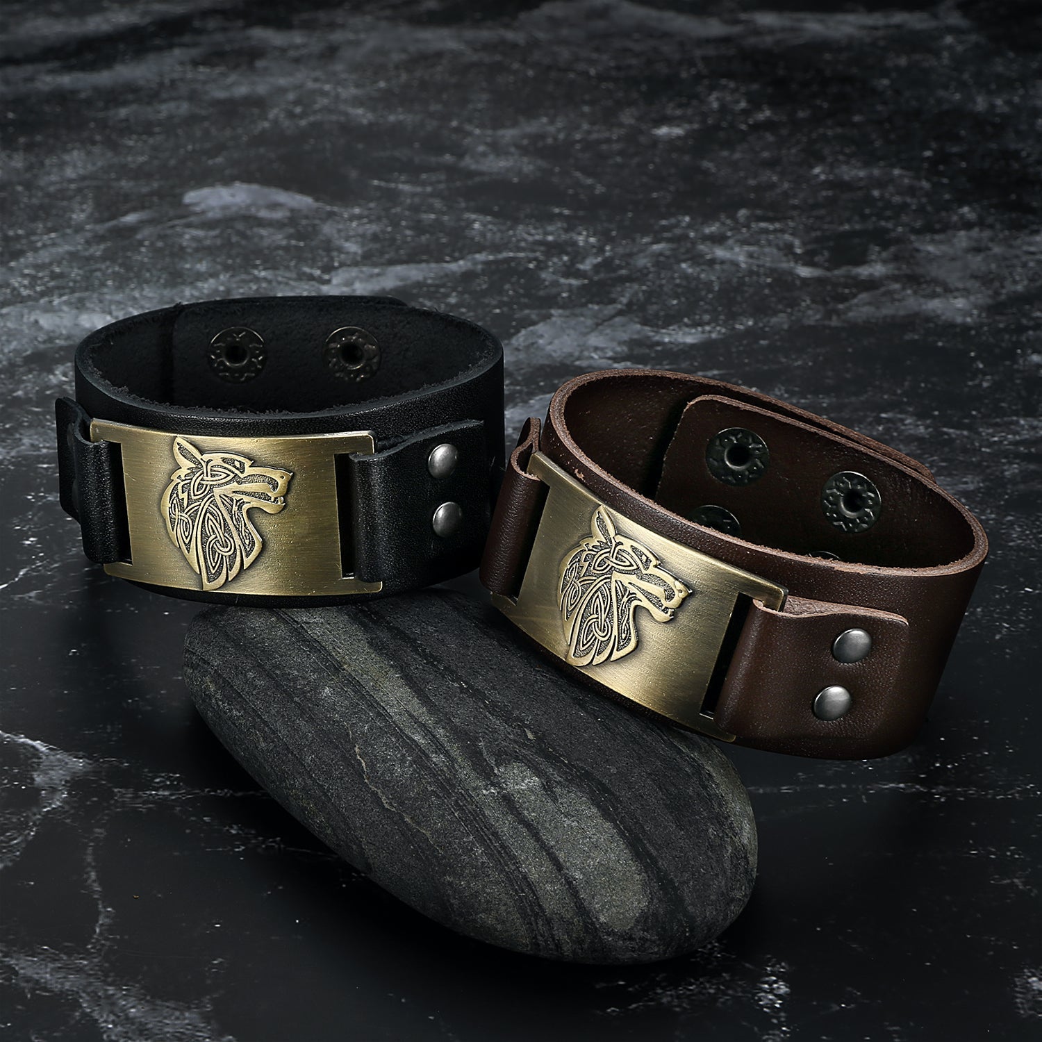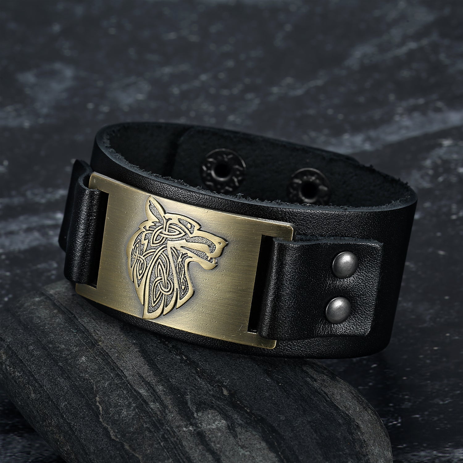 Nordic Pride Leather Nordic Grey Wolf Head Arm Cuff