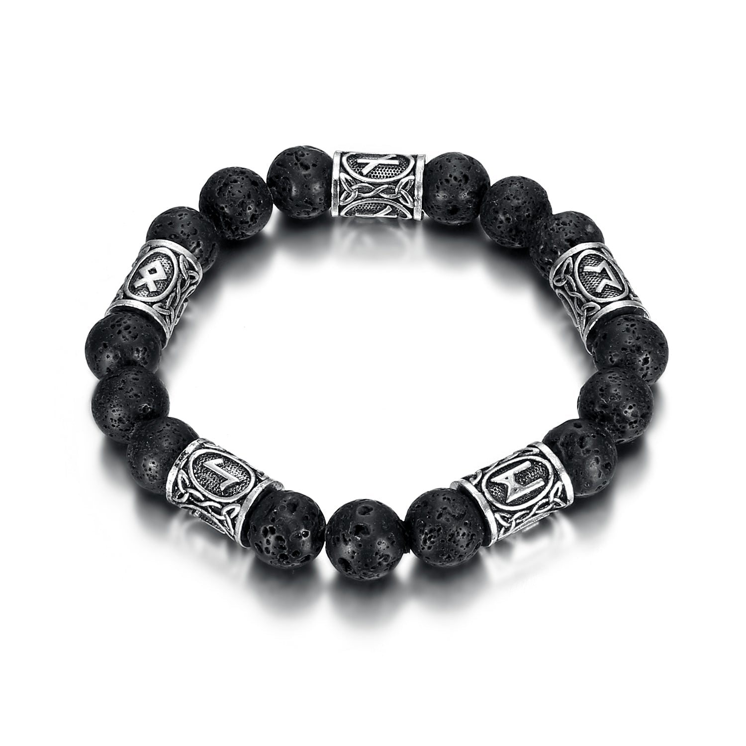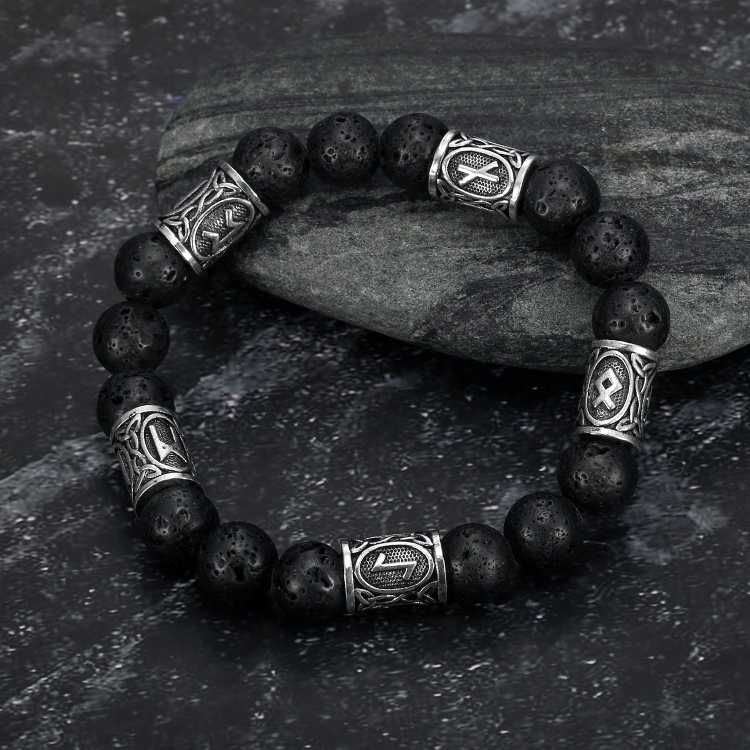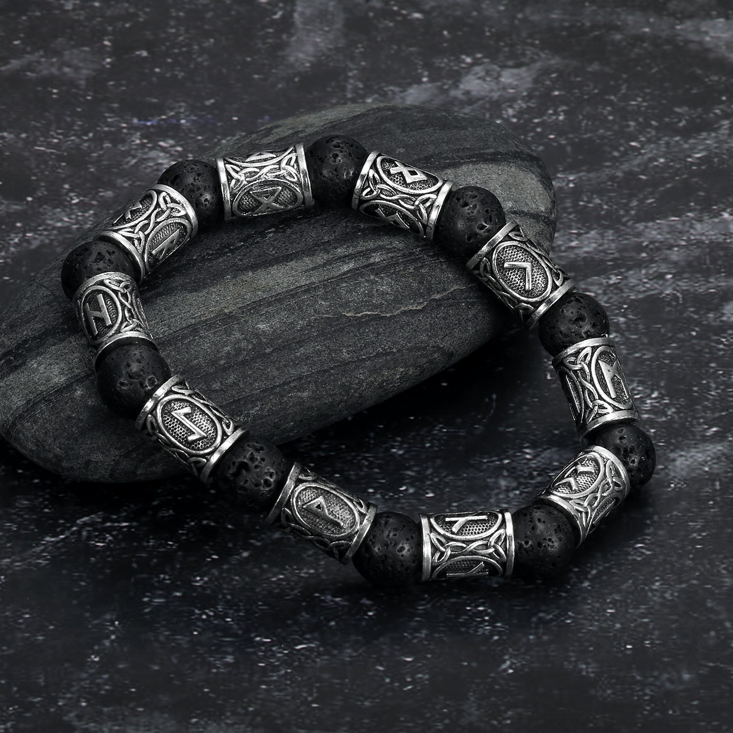 Nordic Pride Silver Rune and Black Lava Stone Bracelet