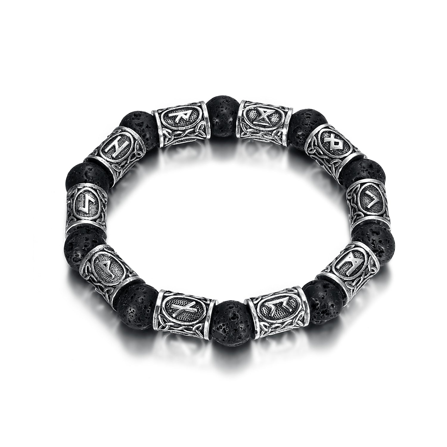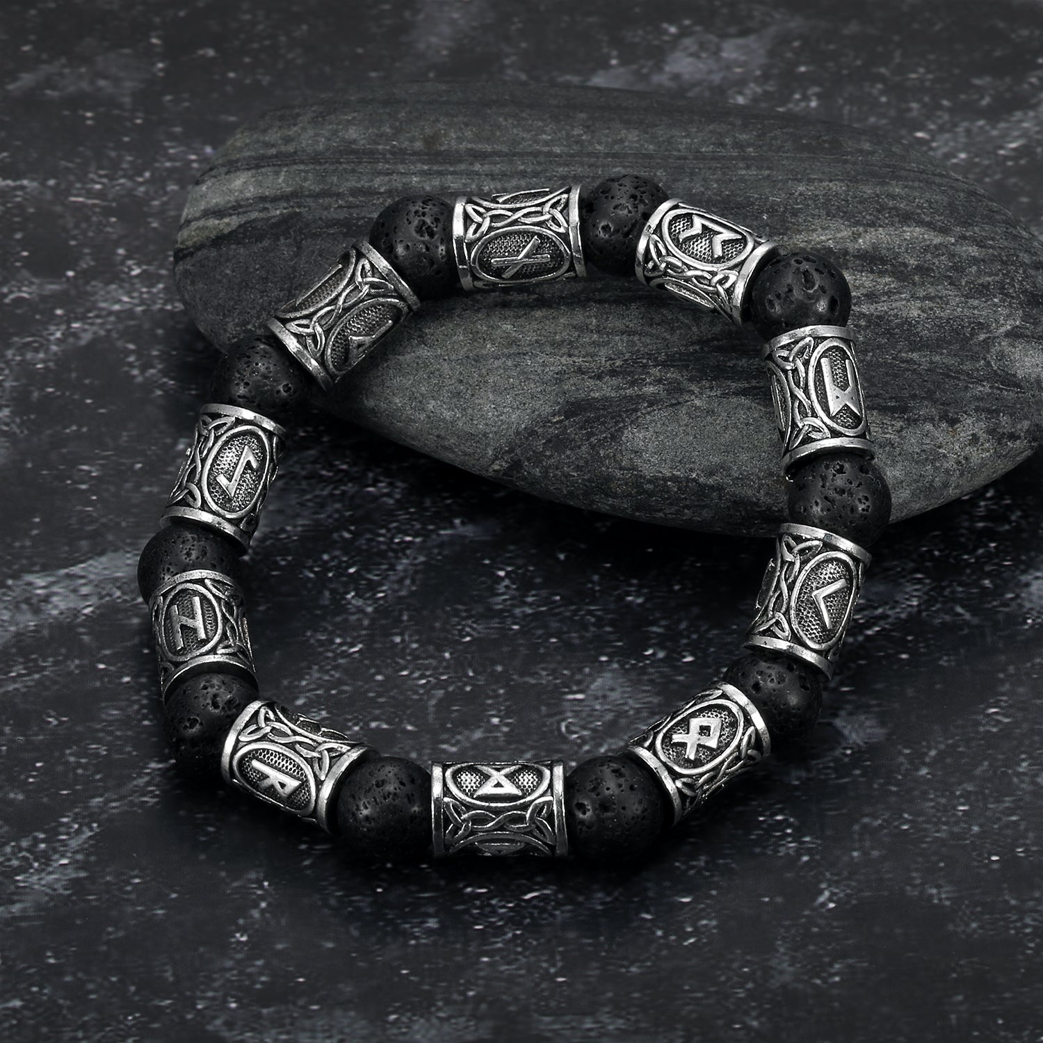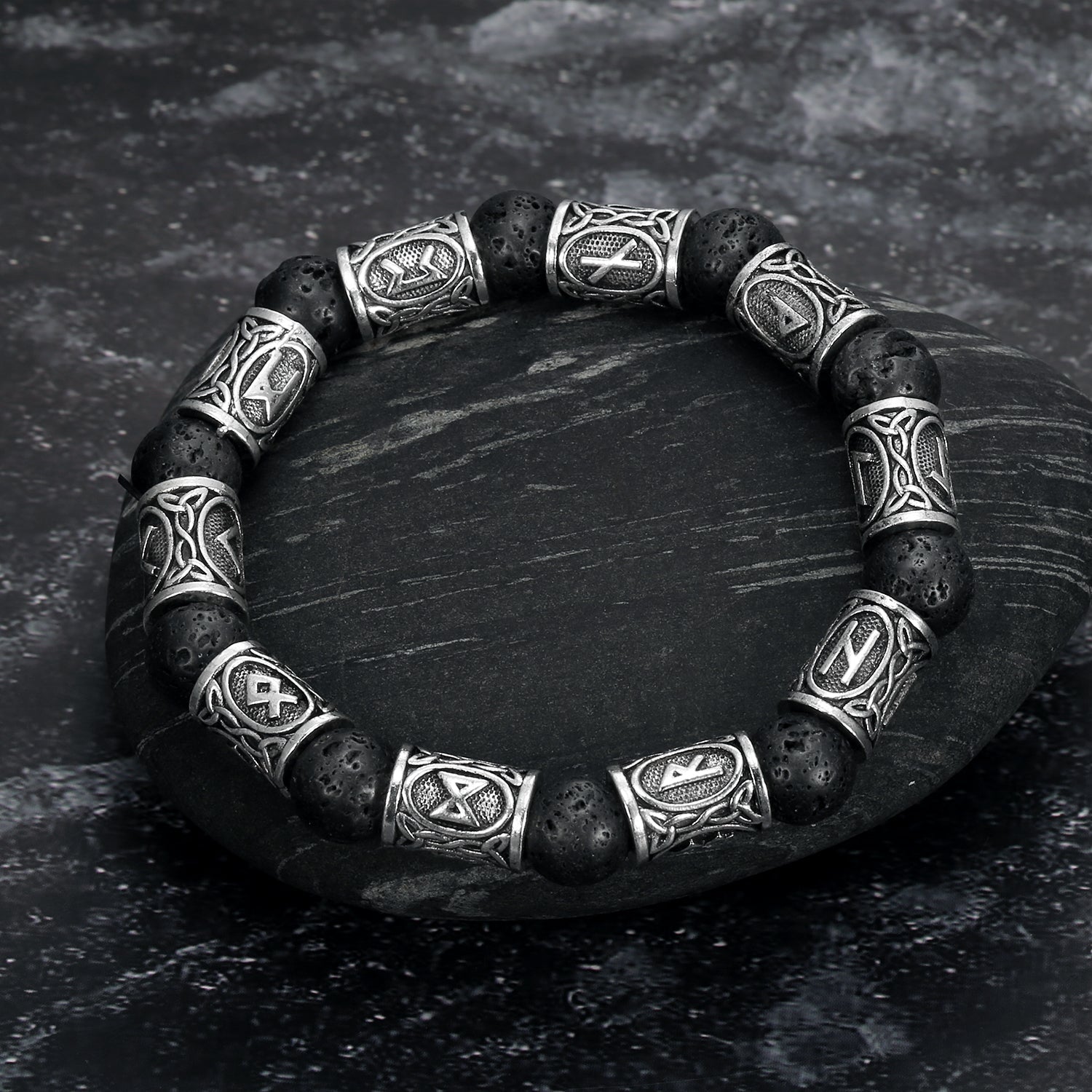 Nordic Pride Silver Rune and Black Lava Stone Bracelet
